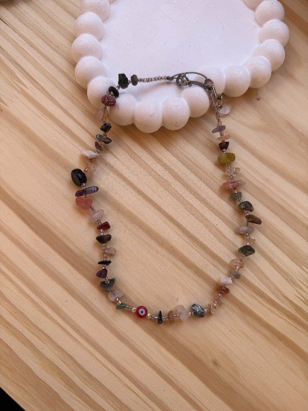 Collar hecho con escalas de piedra , Termianado con cadena de acero quirúrgico