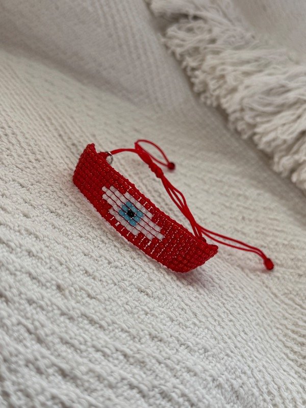Pulsera trenzada con hilo de seda y mostacilla calibrada a telar