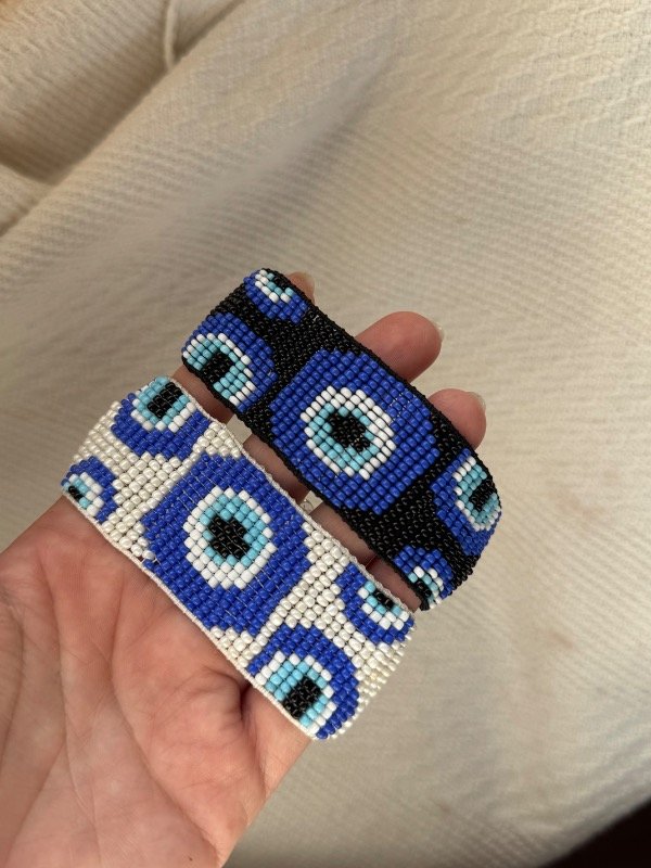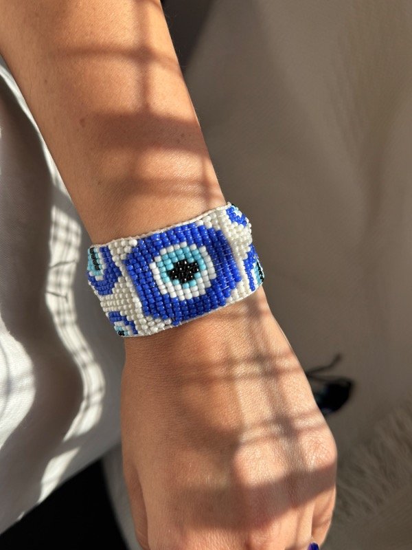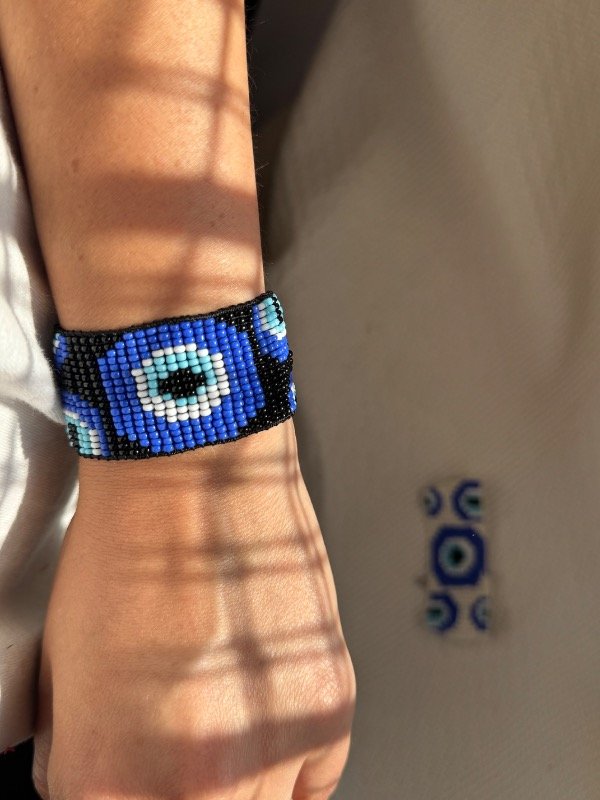 Pulsera trenzada con hilo de seda y mostacilla calibrada a telar