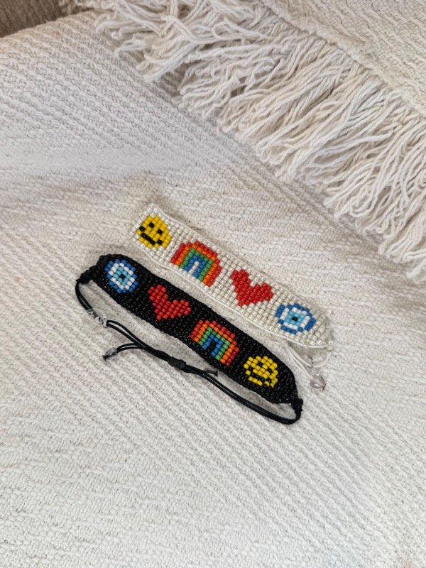 Pulsera trenzada con hilo de seda y mostacilla calibrada a telar